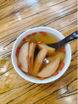 成品梨肉软烂呈半透明,汤汁晶莹醇厚,入口温热甜润,梨子的天然果酸与冰糖的甘甜完美融合,化作一股暖流直达五脏六腑,带来极致的舒坦与滋润。
