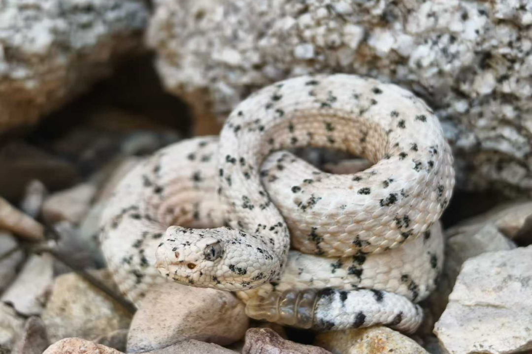 西南小斑响尾蛇( Crotalus pyrrhus ) 有些种群有着天然的大理石白色,甚是惊艳,但是其也具有比西部菱斑响尾蛇更强的致命毒性。丨摄影:Hammond