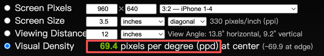 iPhone 4在12英尺距离下达到了69.4ppd,超过60ppd|phrogz.net