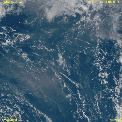 2022年初汤加火山爆发,将大量物质喷射进了平流层 | 向日葵8号卫星