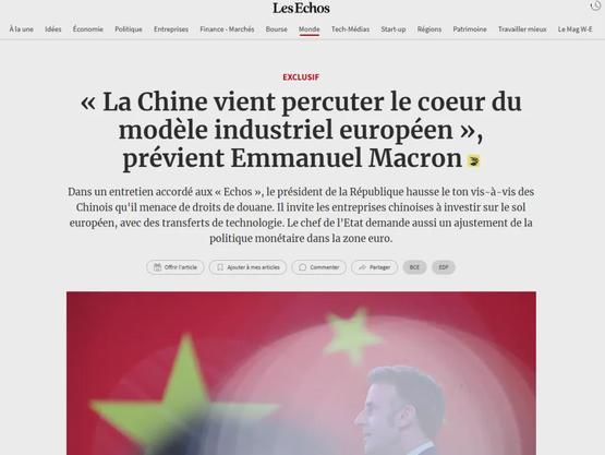 这种深度渗透让法国总统马克龙感到前所未有的焦虑,今年12月初,他访华后在《回声报》直言:“中国顺差正撞击欧洲工业的心脏。