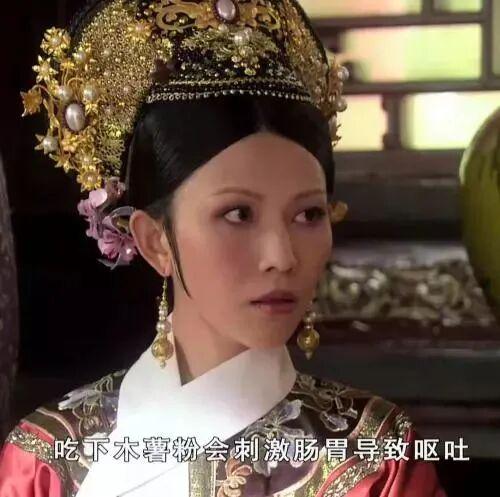 剧中,温宜公主吃了掺进木薯粉的马蹄羹后吐奶不止|电视剧《甄嬛传》