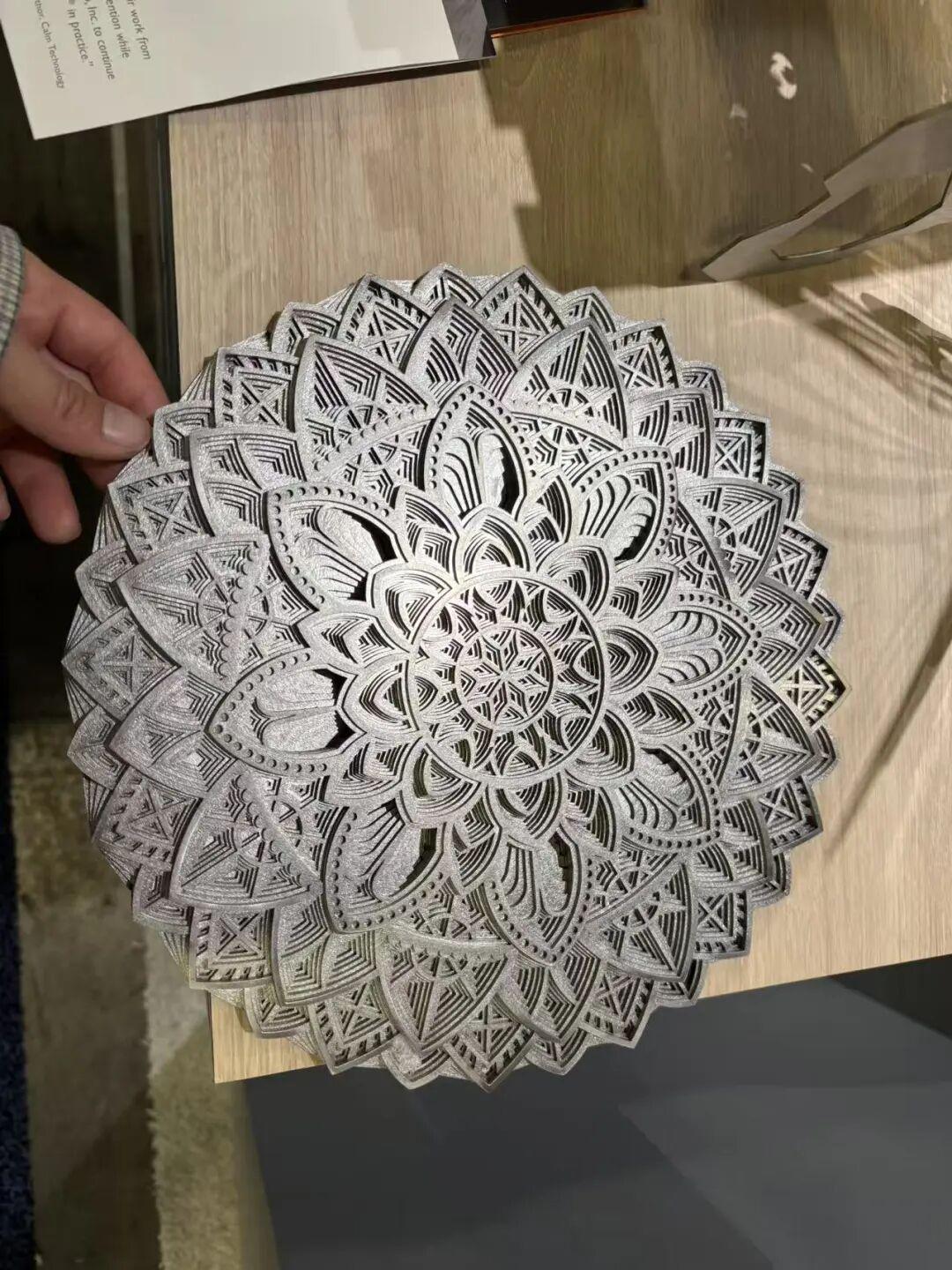 9)Xtool激光雕刻机我手上的是一个五斤重的大铁块,但是和蕾丝一样精美,这是xTool金属雕刻机的手笔。