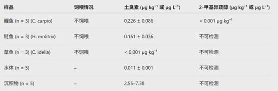 对于两个鱼塘里饲养鱼类、水体、底泥沉积物的土臭素和2-甲基异莰醇含量的检测结果。鲤鱼底栖又喜欢翻底泥,鱼肉中的土臭素含量最高,也因此吃起来腥味最重丨参考文献[17]