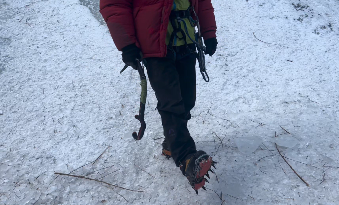 许多攀冰从业者最初也都是通过享攀的教学班接触攀冰,又成为其他户外品牌、俱乐部的教练或摄影师——然后才有了社交媒体上那些震撼的攀冰视频和照片。我报名参加了享攀的三日初级攀冰训练营,要求里注明“0基础可以参加”。周鹏解释,很多专业人士最开始都是0基础爱好者,而系统性的教学能让真正想玩这项运动的人少走弯路。