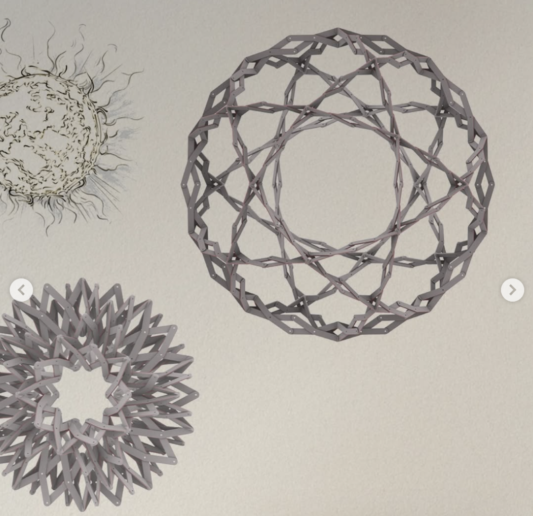 火炬直径约 3.1 米,可扩展至 4.5 米,点燃圣火后会从收紧状态徐徐盛开,火炬的灵感来自太阳,也来自达芬奇的名作 “Nodi vinciani”(列奥纳多的结)。
