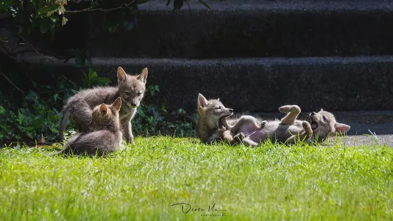 郊狼每胎可生4-7只幼崽。相较于狼,幼年郊狼之间的打闹可不仅仅是儿戏,而是实打实的撕咬与攻击,到4-5周大时,同窝的幼崽便可以通过这种打斗确立自己在族群中的地位。出生8个月后,这些小家伙便可以长到与父母相仿的体型,并逐渐脱离族群,开始四下开疆扩土。郊狼的妊娠期仅有约63天,强大的繁殖力加上较短的繁殖周期,使得它们的种群可以在短时间内实现快速增长。