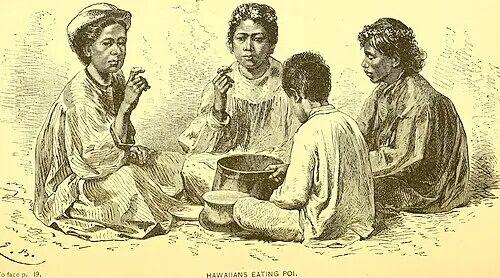 在吃poi的夏威夷人,看起来这碗poi是一指稠的| Wikipedia