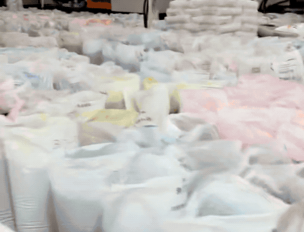 所以仓库里得准备各种颜色的塑料熔融颗粒。