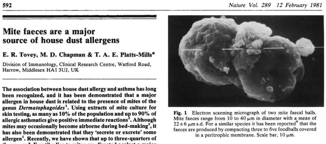 但这还不足以形成团块。如果没有粘合剂,灰尘只会均匀地铺在地板上,像一层薄薄的霜。让它们聚集成团的“胶水”,源自一种看不见的生态系统。1981年,《自然》杂志发表的一项研究指出[2],屋尘螨的排泄物,那些直径约20微米的微小颗粒,被一层富含粘性蛋白的粘液包裹 。