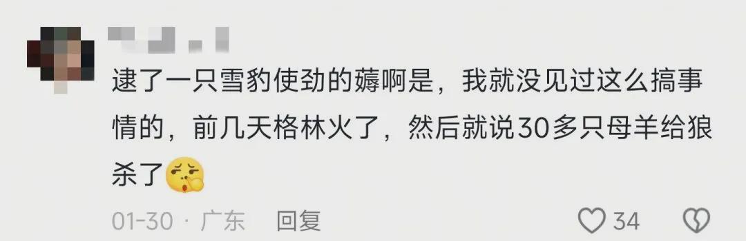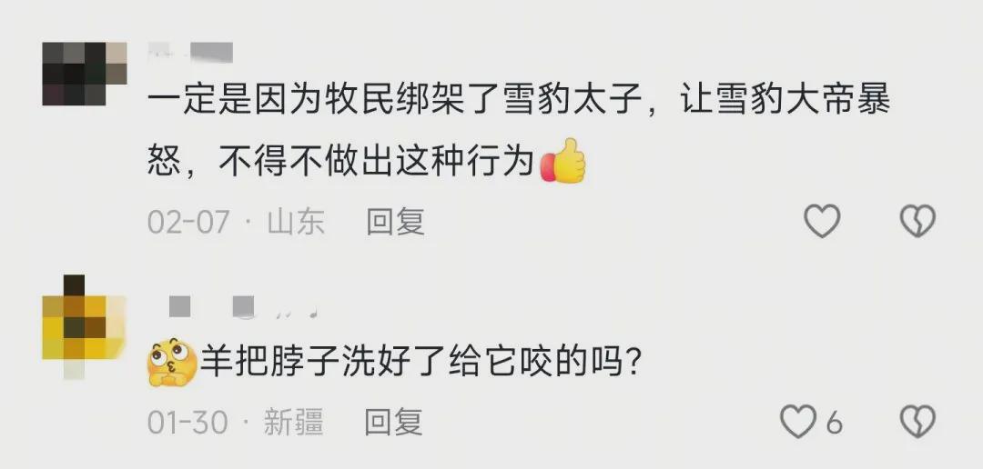 然而,在雪豹杀羊的新闻报道后,大量网友提出质疑,认为该报道过于夸张,甚至有人觉得这是人为事件,却让雪豹背锅,用雪豹平账。