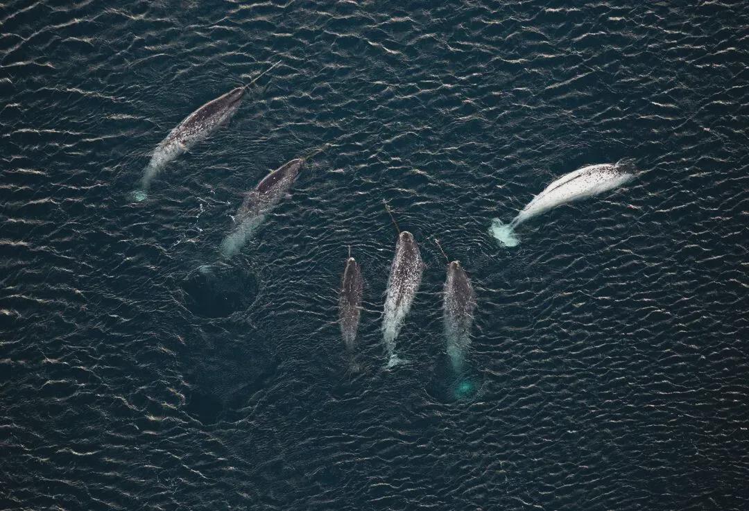 围在一块儿的独角鲸丨Wikipedia
