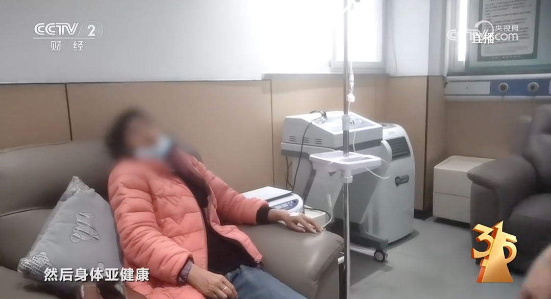 记者探访的生产商基地中,就有前来求医问药的老人,购买公司给出的药品和医疗方案;还有厂家和医疗机构合作的注射点,有关节炎、肾病、糖尿病的患者正在接受静脉注射外泌体。