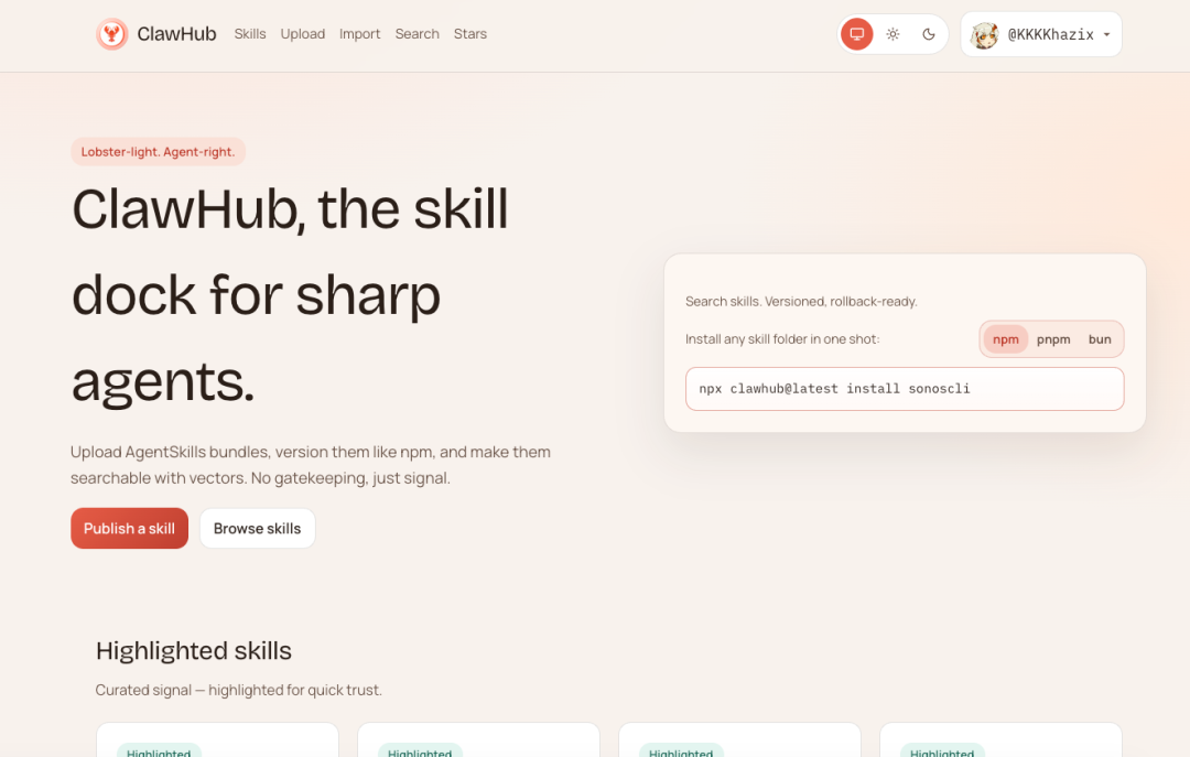 OpenClaw有一个官方的Skills商店,名叫ClawHub。