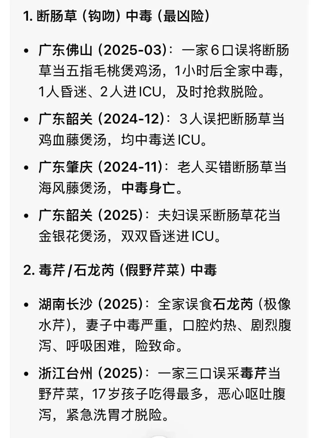 误食中毒风险+重金属超标污染+致癌物成分+植物日光性皮炎隐患或许有人会抱着“老辈子吃那么多年都没事”的侥幸。但拿健康甚至生命赌一个概率,这买卖,您说划算不划算吧!