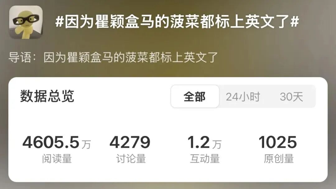 眼尖的网友甚至还发现,火速蹭上热点的盒马给线上菠菜标注了英文。