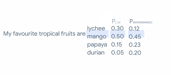 目前文本水印的主流解法,是“黑幕操纵” AI 生成词汇的概率分布。