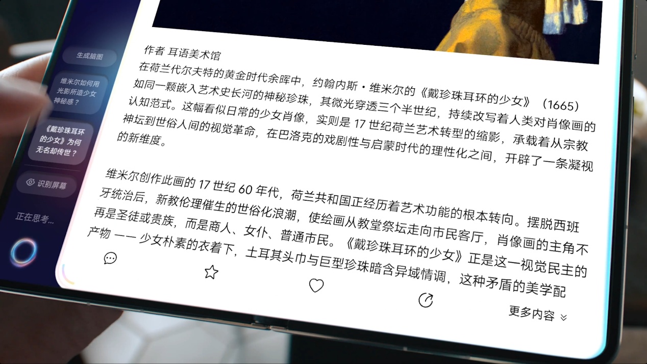 折叠屏的使用场景天然更“重”——看文档、剪视频、开会议、读财报。当然还有外屏的单独使用场景,在这些需要深度投入的时刻,用户最不想要的,就是被频繁打断或反复操作。而一个能理解当前情境、主动提供辅助的AI,恰恰是折叠屏从“尝鲜”走向“生产力工具”的关键拼图。