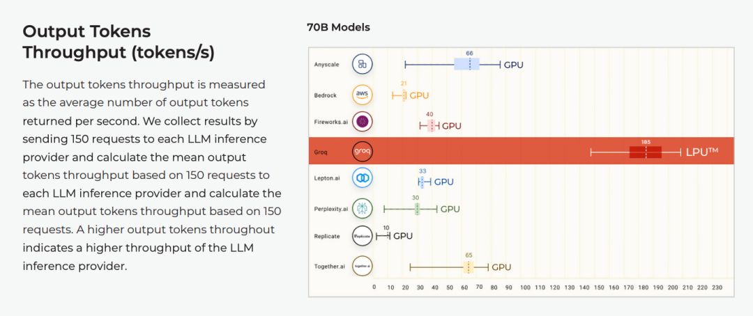 正是凭借这些架构优势,Groq LPU 在所参与的第一个公开基准测试 Anyscale 的 LLMPerf 中,就交出了一份亮眼的成绩单。