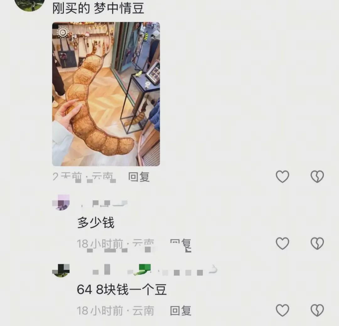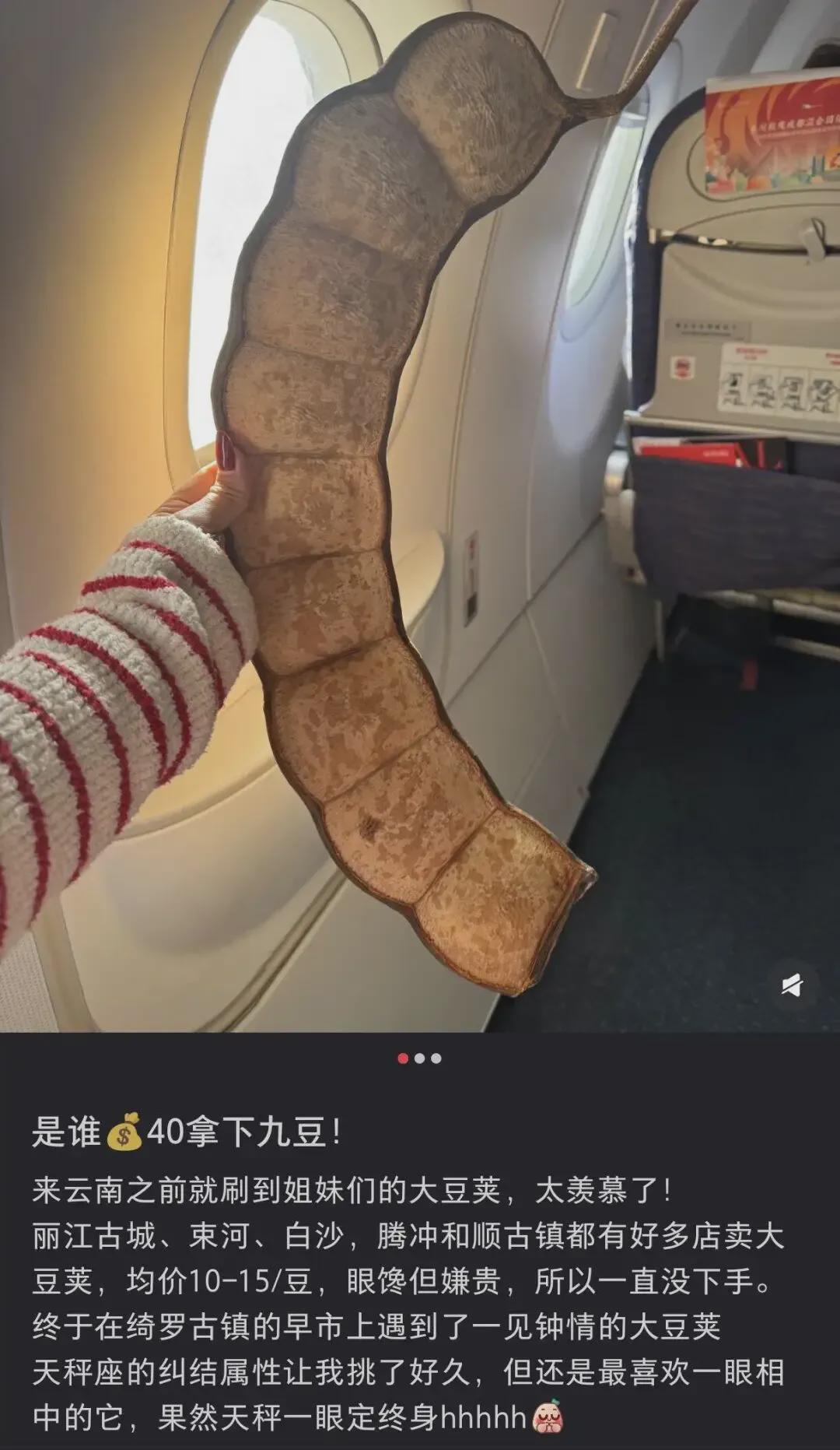 “在机场看到一个人背着个豆荚,比行李箱还显眼。”“我同事从云南回来,办公室里多了一根1米长的豆荚,老板看了都愣住。”还有人晒出自己的DIY成果,把豆荚做成娃娃、挂上铃铛、涂上颜色,每一个都独一无二。