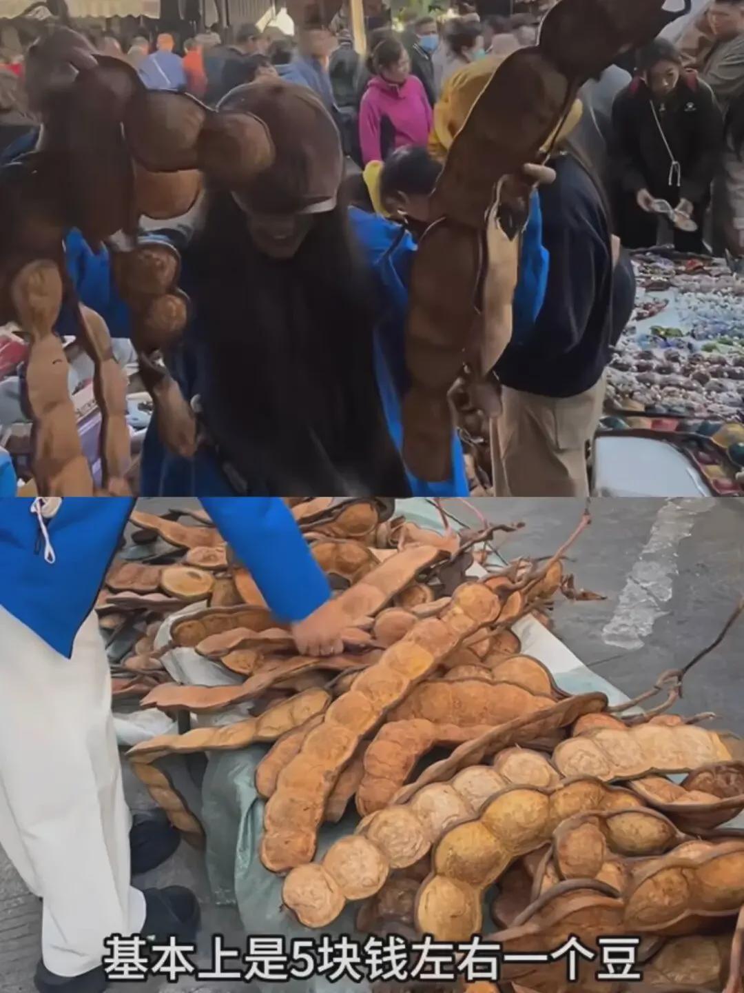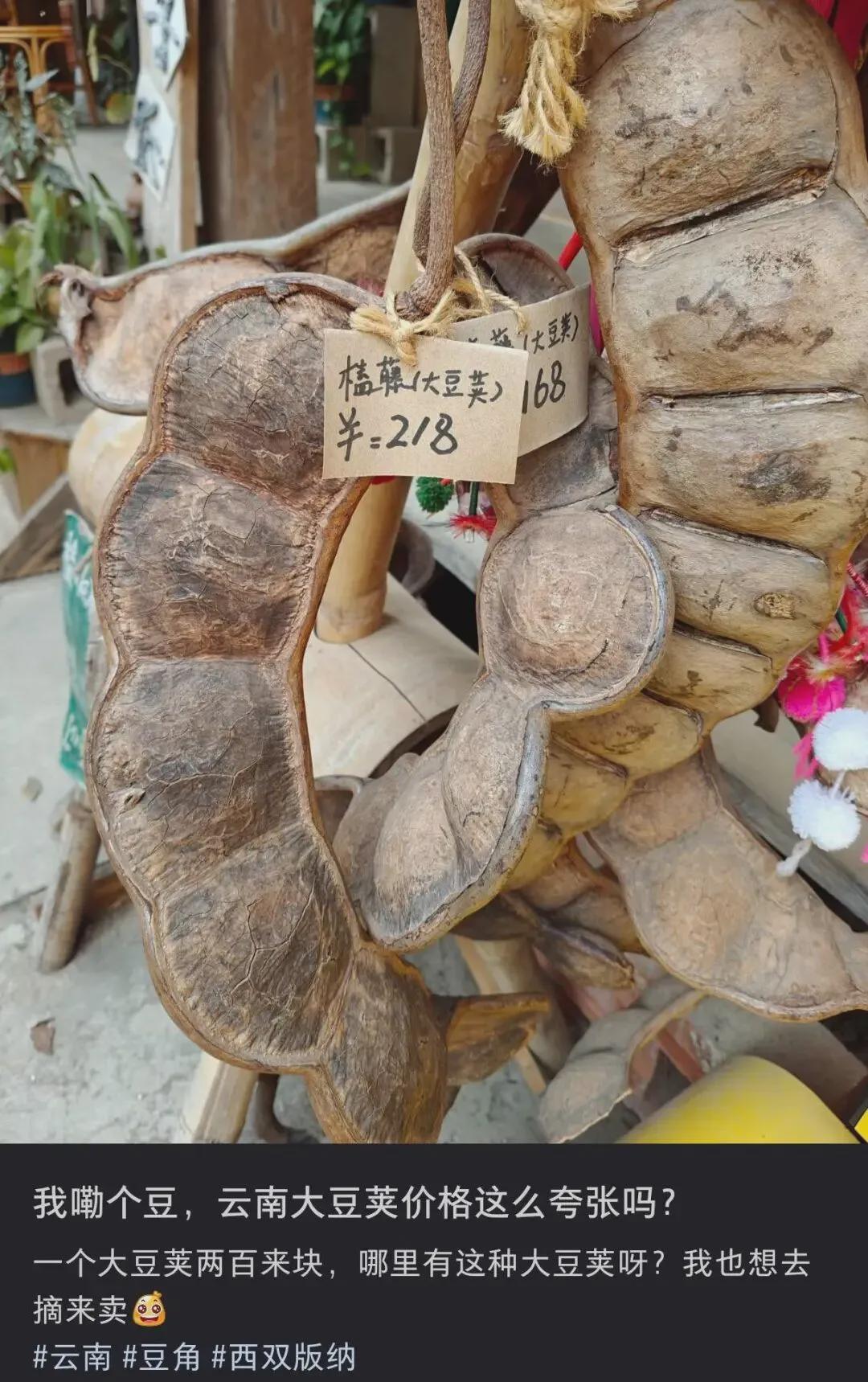 起初,只是一位来自辽宁大连的女士,在普洱的市集上被一根长达1米、造型扭曲的巨型豆荚击中了审美。她花了64块钱把这根“梦中情豆”买下,一路盘在身上,跨越两千多公里飞回了东北。