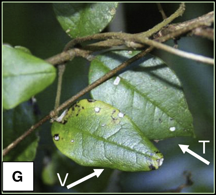 避役藤(V)和宿主植物的叶子(T)对比 | 参考资料[1]