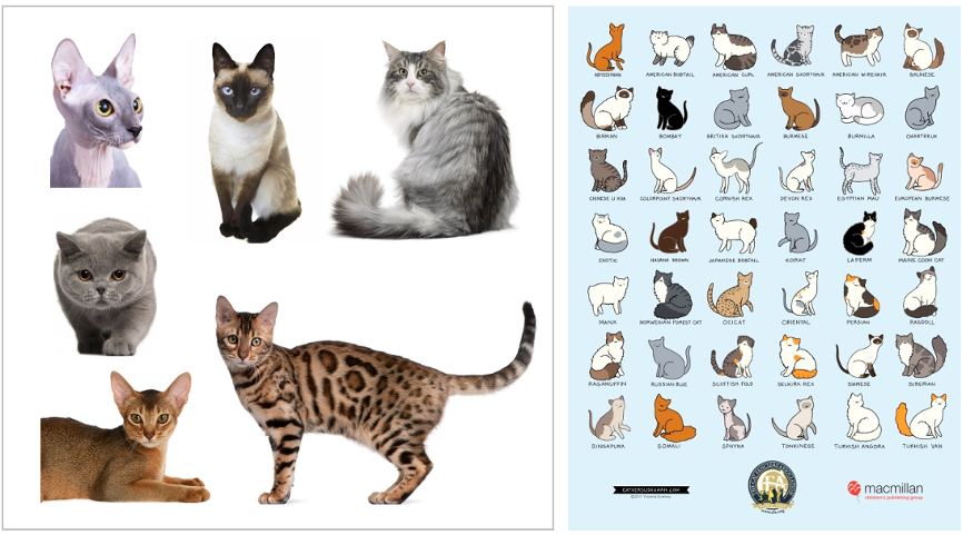 我们也对最早的猫进行了外形的复原。发现这只最早来到中国的猫可能是像图片左边看到的这样,是一只白色的猫,也可能是像右边看到这样,是一只棕色的、带着狸花纹的,同时身上也有白色的猫。